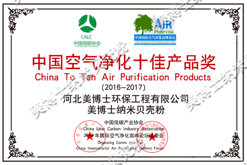 美博士納米貝殼粉以其獨特配方和生產(chǎn)工藝完美實現(xiàn)15大功能,被中國低碳產(chǎn)業(yè)協(xié)會和2016年國際空氣凈化高峰論壇組委會頒發(fā)中國空氣凈化十佳產(chǎn)品獎為實至名歸。美博士貝殼粉也會繼續(xù)前行,繼續(xù)探索,創(chuàng)造越來越先進(jìn)和越來越環(huán)保的產(chǎn)品。