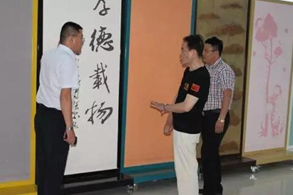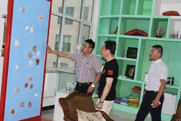 接著,在幾位領導的陪同下,大家又來到了美博士納米貝殼粉涂料項目的產品展示中心,當王宋大先生在看到用最普通的貝殼竟能做出如此多美麗的墻面的時候,驚嘆不已。緊接著董事長安然又向王宋大先生具體介紹了該涂料的十五大功效及二十幾種產品樣式,王宋大先生在聽完董事長安然的整體介紹后對該項目給予了極大的贊許與肯定。